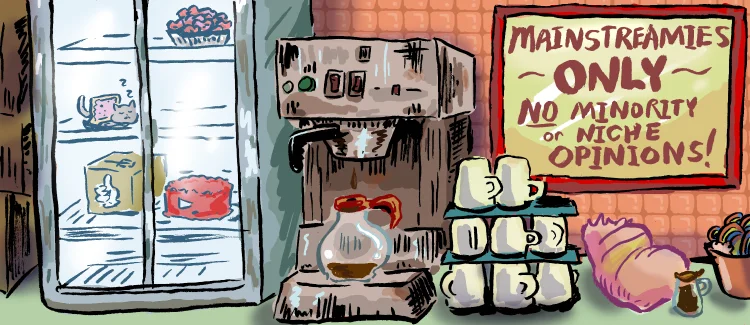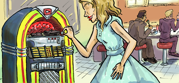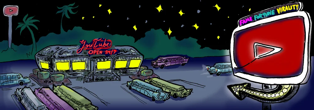 A digitally painted, editorial illustration set for the article Stars In Our Eyes: How Celebrities Affect What We See On YouTube. Celeb digital influence is like a classic 1950's diner; It's full of vivid sensationalism, hollow personality, and minority suppression is very real. For The University of Delaware's Arak Journal.