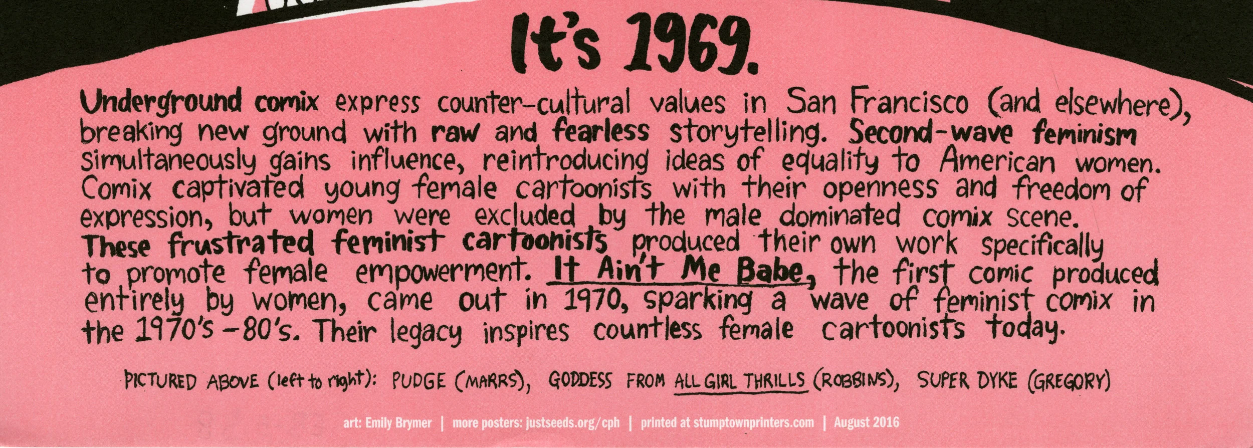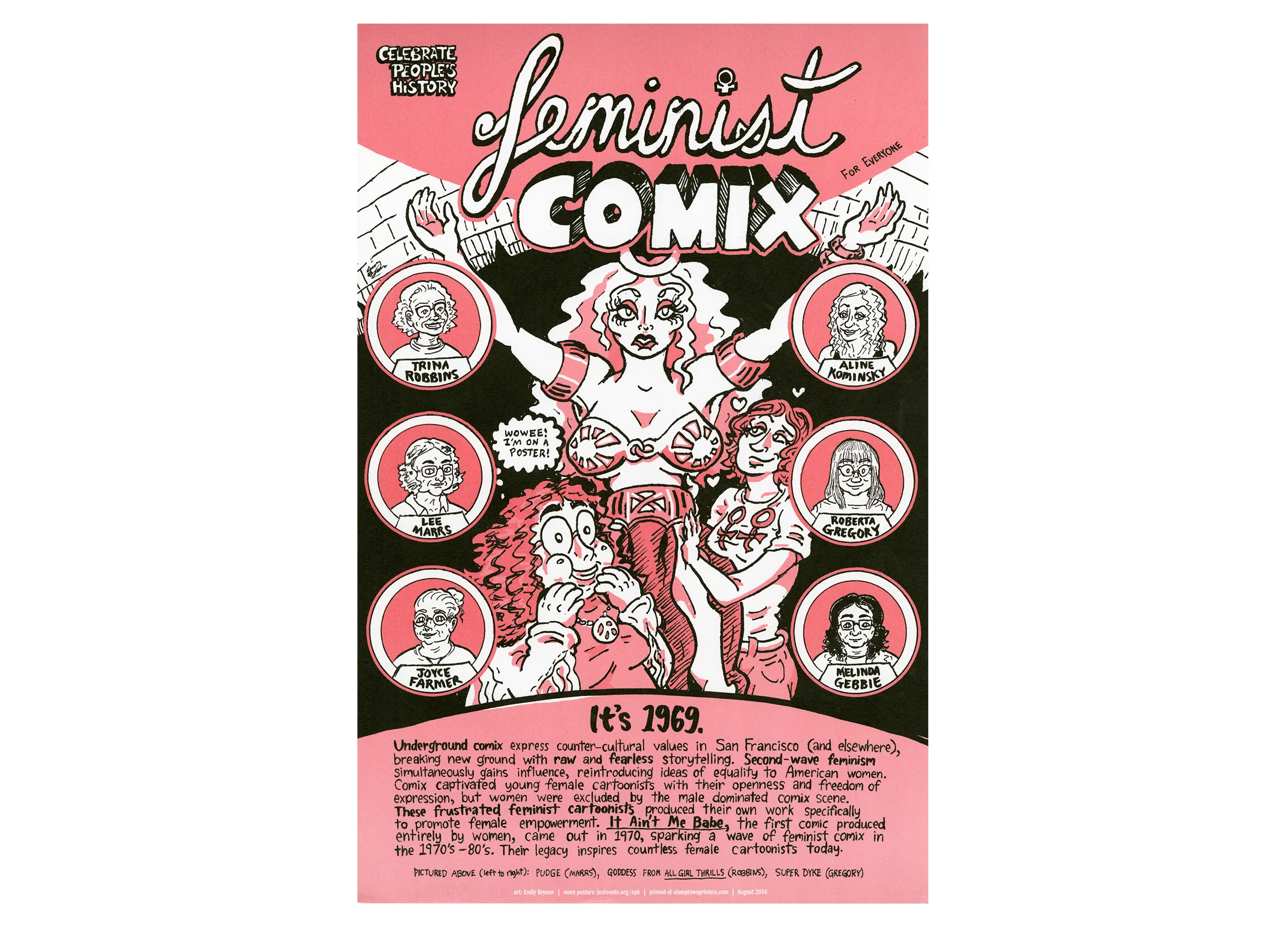 A poster design provoking awareness to the Feminist Comix produced in the late 1960's up to the early 1980's. For JustSeeds.